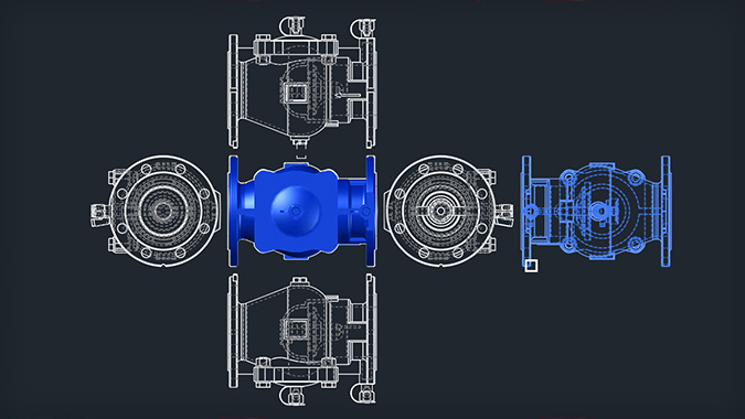 In 2D too, it is possible to use non-AUTOFLUID material blocks on your AUTOFLUID network. But you still need to have the right 2D view and the right block to insert in your plans, in your detail drawings or in your sections. If you have the 3D equipment block, the 2D views command is for you. AUTOFLUID automatically prepares the six views of the 3D object, leaving you to simply select which one to connect to your network.