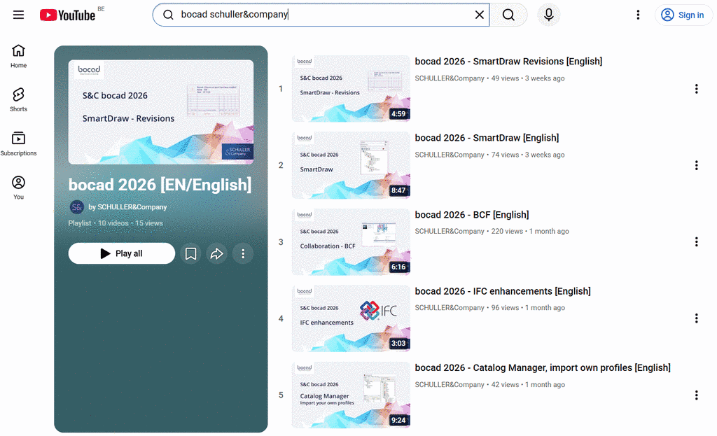 Video topics include bocad 2026 Highlights – playlist with 10 videos and more to come !