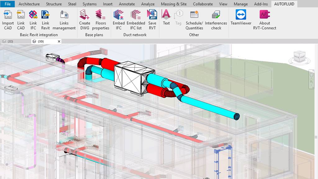 > Once your networks are ready in 2D, AUTOFLUID automatically generates your cross-sections and models your networks in 3D. Easily present your 3D views or insert your network precisely into the architect's model and collaborate on BIM projects. No time wasted on modelling.